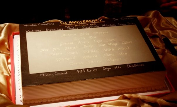 Anyway, there were so many exciting things happening in this journey. You can’t imagine a celebration cake in the shape of a newly produced website, you can’t imagine when uninstalling a campaign screen saver all your hard disk content will disappear…and what about the remote creative team cannot show up 2 minutes before the creative presentation?!